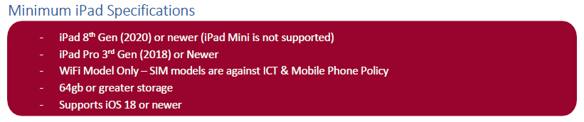 Whilst every effort is made to use free apps, in some cases a paid app is the best or only choice. To facilitate purchase of these, it is suggested that parents purchase an iTunes card for the acquisition of apps throughout the year.